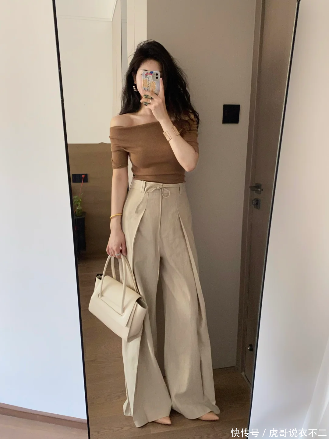 比如,一件浅色系的一字肩上衣,合身的设计能够凸显出腰部的纤细曲线,展现出优越的身材比例。再搭配一条高腰裤或半身裙,瞬间拉长腿部线条,让你看起来更加高挑。