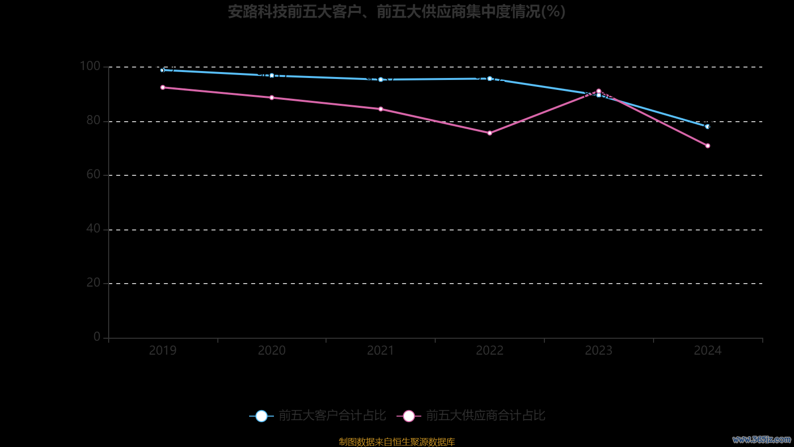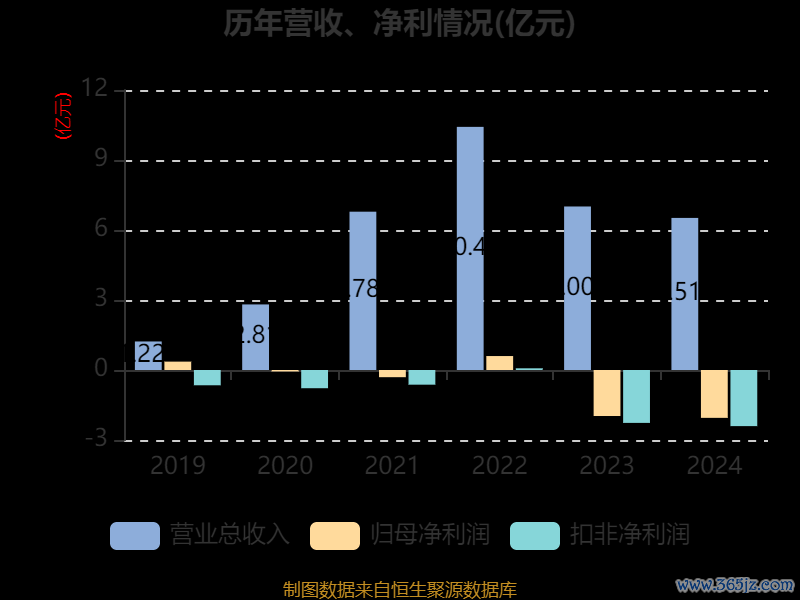 中证智能财讯安路科技(688107)4月26日披露2024年年度报告。2024年,公司实现营业总收入6.52亿元,同比下降6.99%;归母净利润亏损2.05亿元,上年同期亏损1.97亿元;扣非净利润亏损2.4亿元,上年同期亏损2.27亿元;经营活动产生的现金流量净额为-6193.53万元,上年同期为-1.93亿元;报告期内,安路科技基本每股收益为-0.5118元,加权平均净资产收益率为-15.42%。