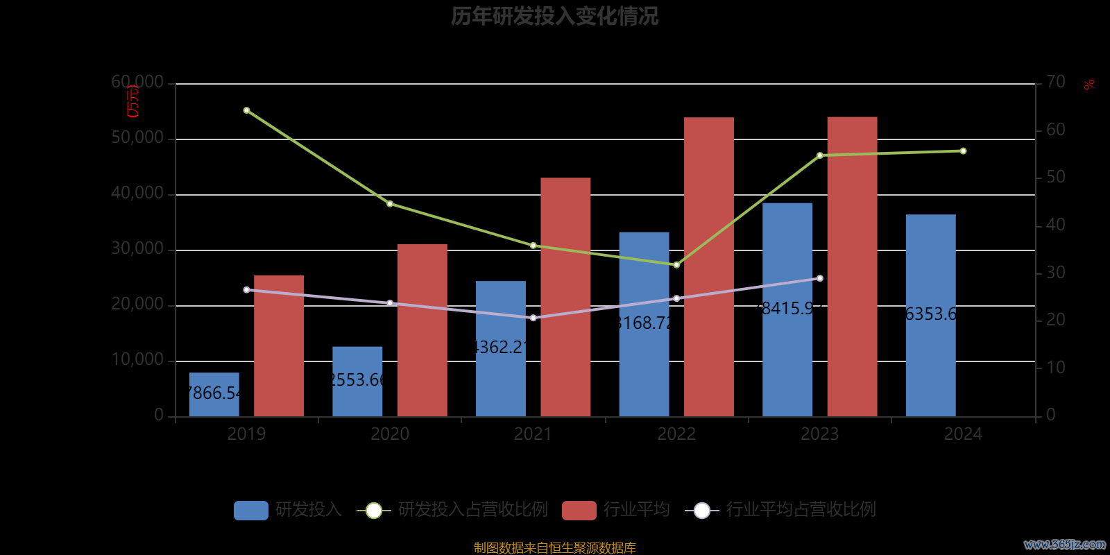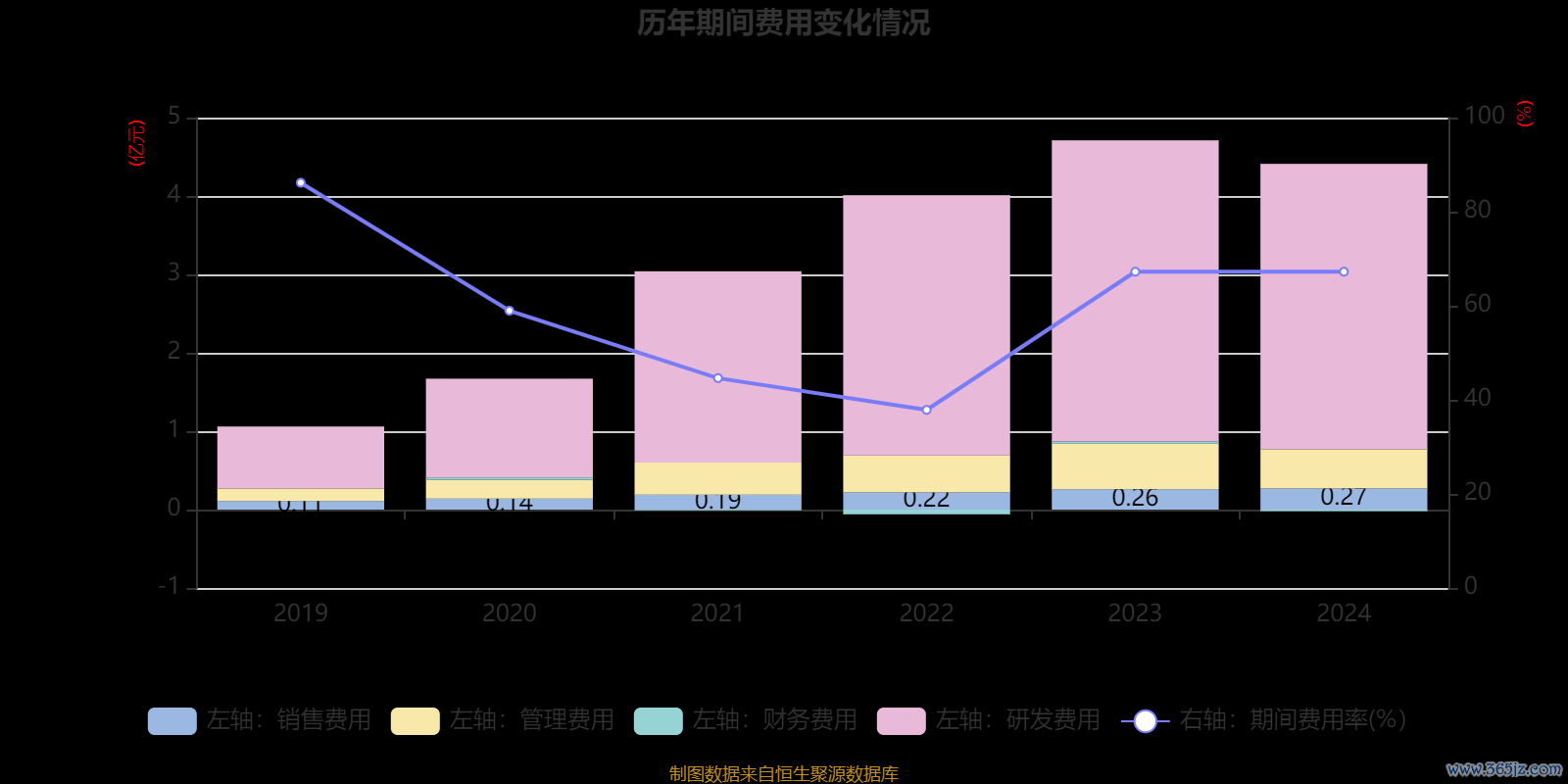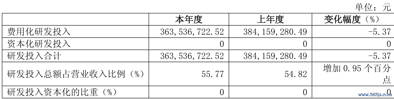 2024年全年,公司研发投入金额为3.64亿元,同比下降5.37%;研发投入占营业收入比例为55.77%,相比上年同期上升0.95个百分点。此外,公司全年研发投入资本化率为0%。