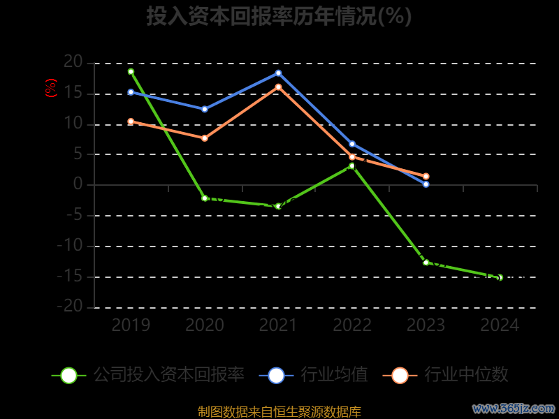 数据显示,2024年公司加权平均净资产收益率为-15.42%,较上年同期下降2.49个百分点。公司2024年投入资本回报率为-15.13%,较上年同期下降2.46个百分点。